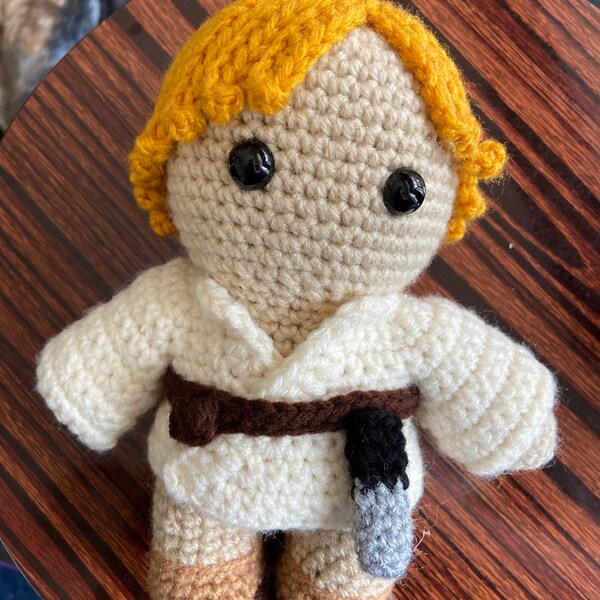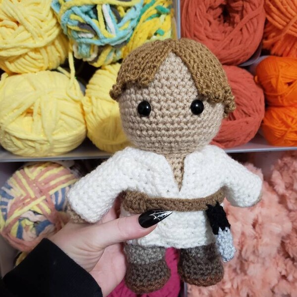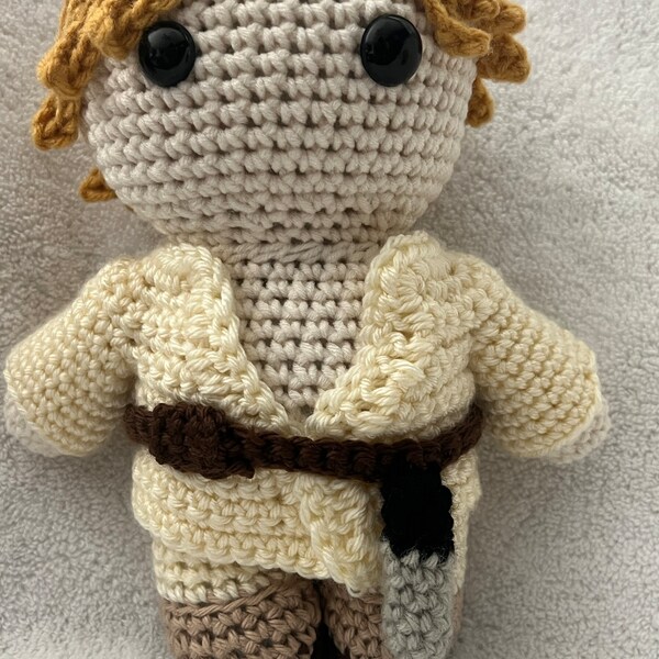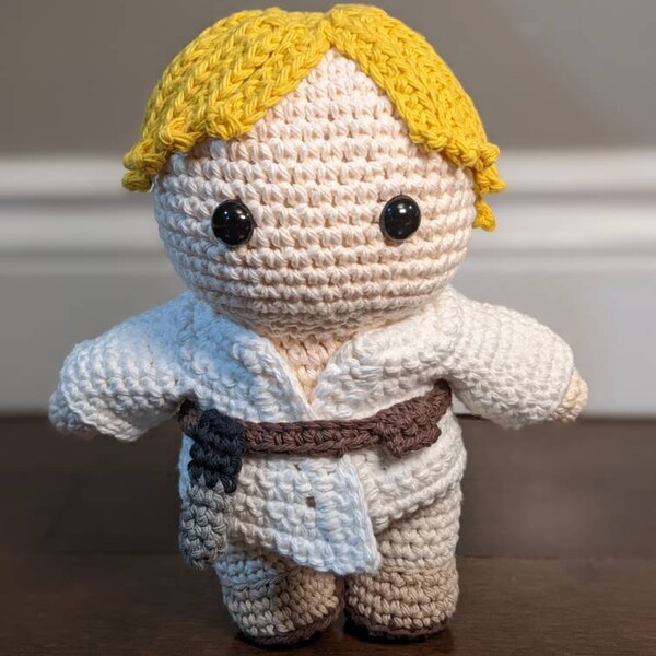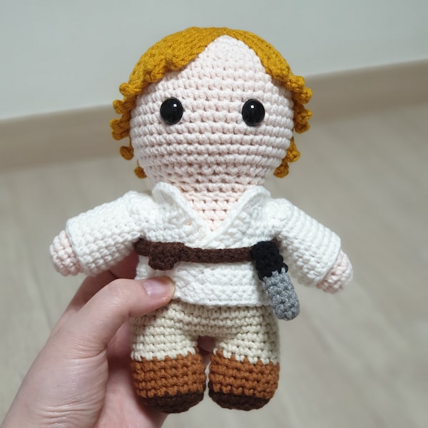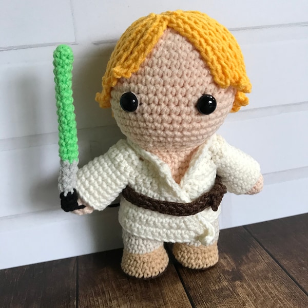 This is a digital crochet pattern (not a finished item). Luke Skywalker is a character created by George Lucas. This pattern is an independent fan-made tribute, with no affiliation to the official franchise.