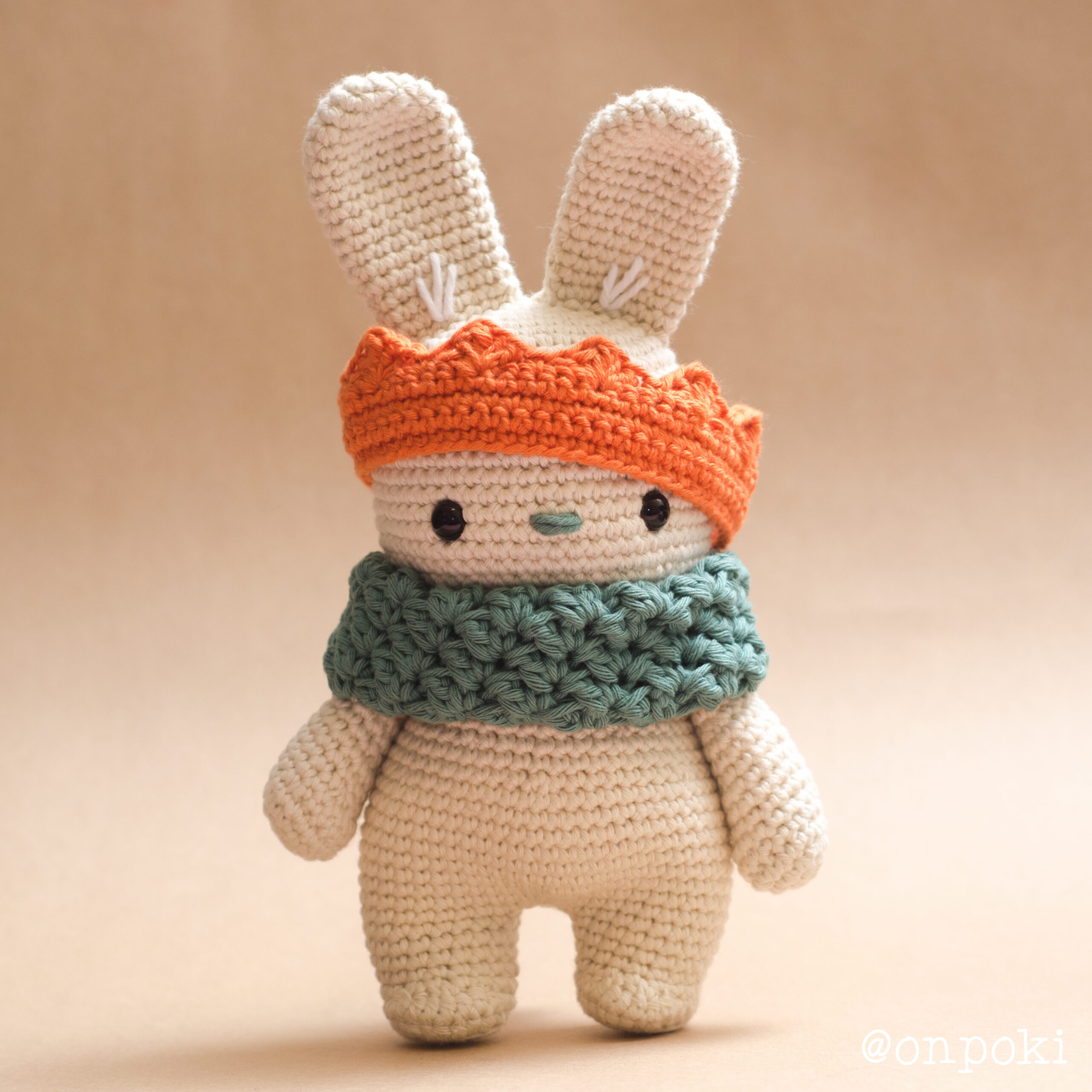 Morgan el Conejito – Conejo de crochet personalizado con bufanda y corona – Hecho a mano en 100% algodón (colores personalizados)