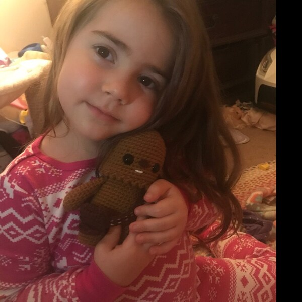 How incredibly cute is this Wookie?!! I’ve seen him on Instagram (as many have purchased the pattern) but I had to have him directly from the artist. I’m so happy that Onpoki was able to make this adorable Chewie for my son’s nursery. He is absolutely perfect and I couldn’t be happier! I love that he came with a bag and a sweet card from the seller. I couldn’t recommend this enough! Thank you so so much Paula for making this for us and for your excellent customer service! You were a pleasure to speak with ❤️❤️❤️