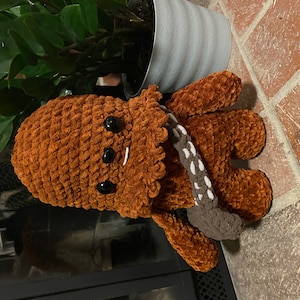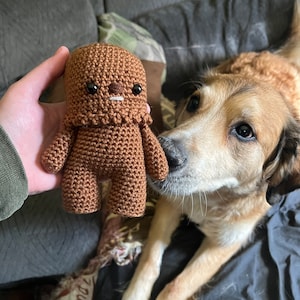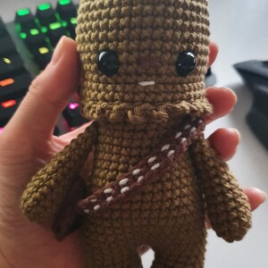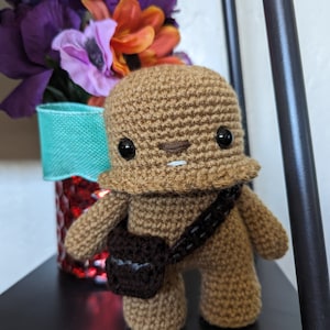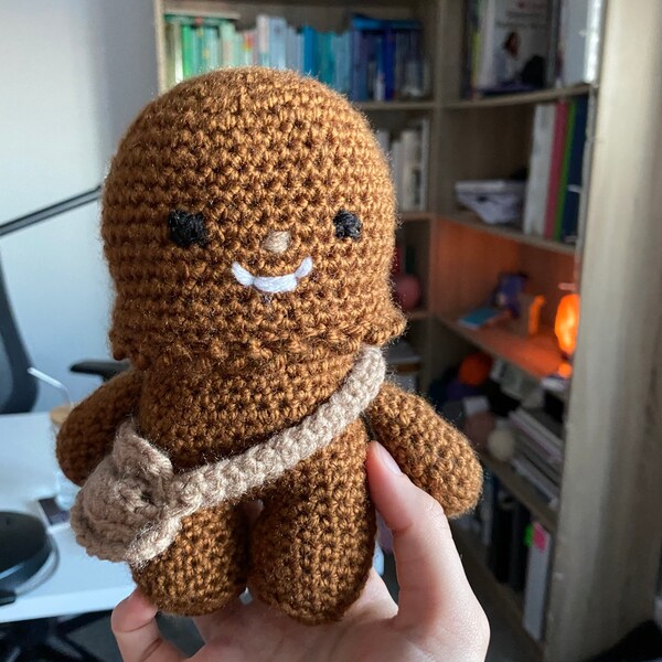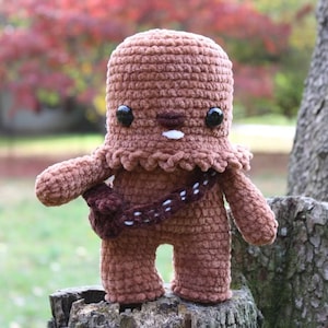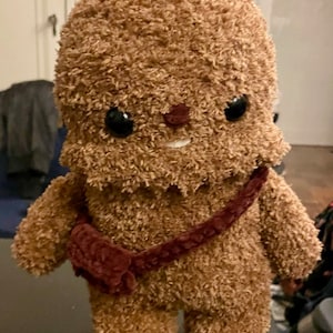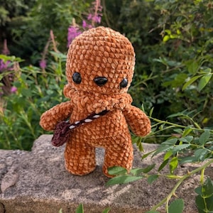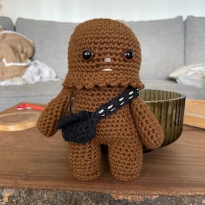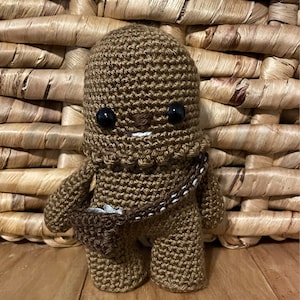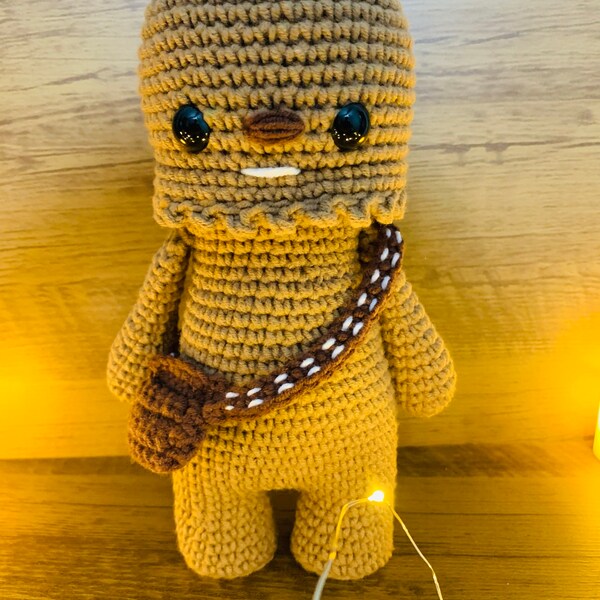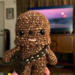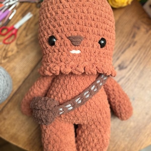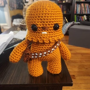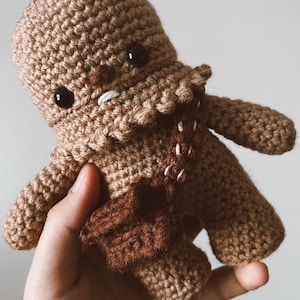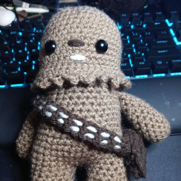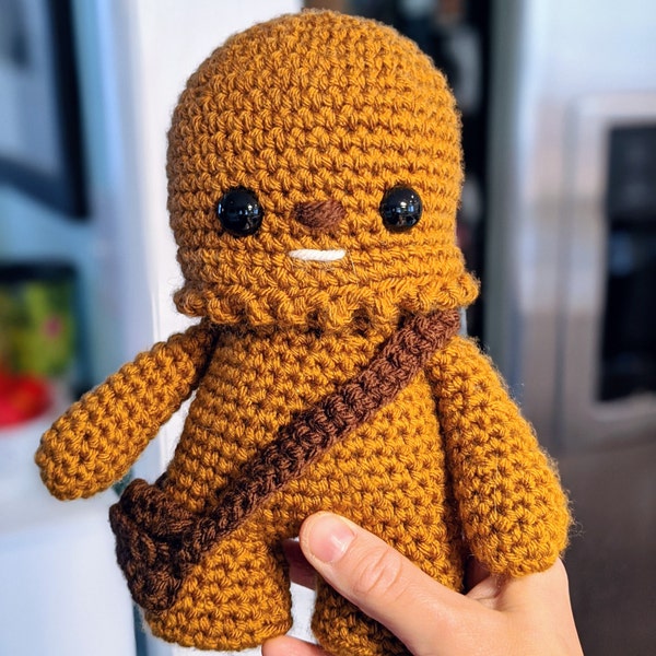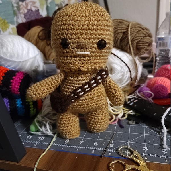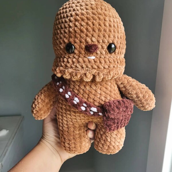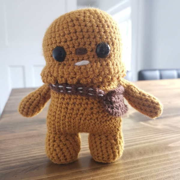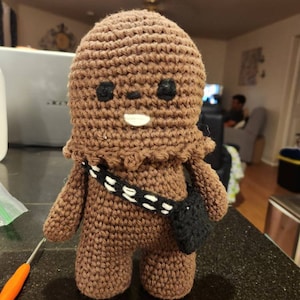 Crochet your own Wookiee with this Chewbacca crochet pattern, a fan-made tribute to the Star Wars universe. Designed with love for fellow fans, it features step-by-step guidance to help you recreate this iconic character in yarn.