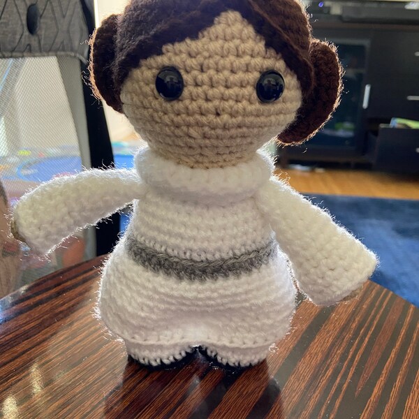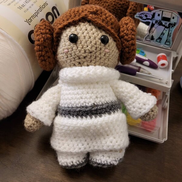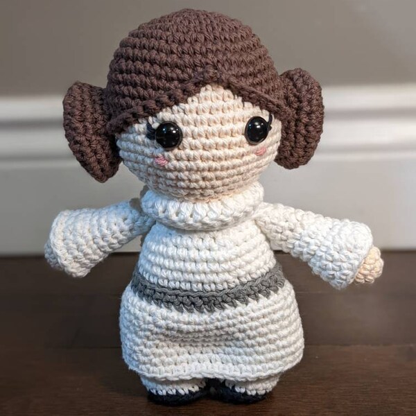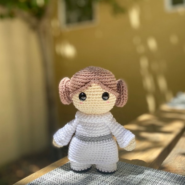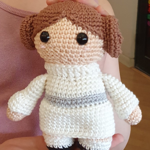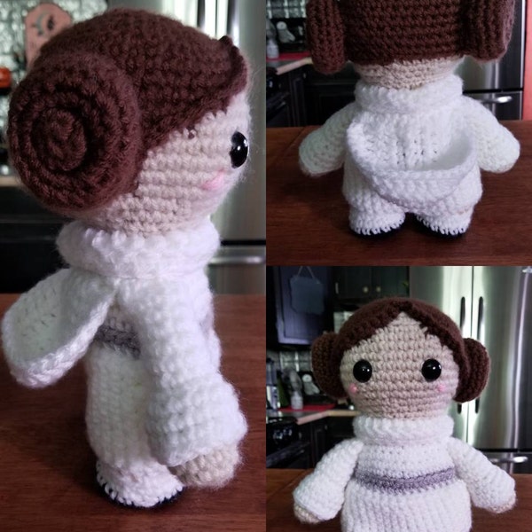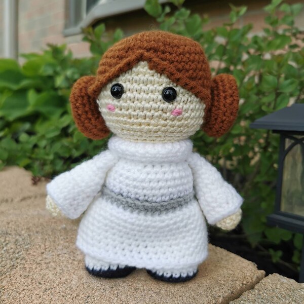 This is a digital crochet pattern (not a finished item). Princess Leia is a character created by George Lucas. This pattern is an independent fan-made tribute, with no affiliation to the official franchise.